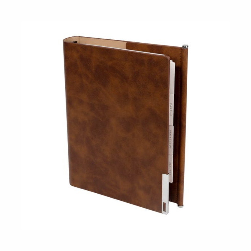 Agenda semanal 2026 de 140 hojas, ideal para la organización, que incluye calendarios, control de presupuesto, seguimiento de hábitos y planeador de proyectos. Incluye siete separadores, tres hojas de stickers y un bolígrafo metálico, presentada en una caja regalo.