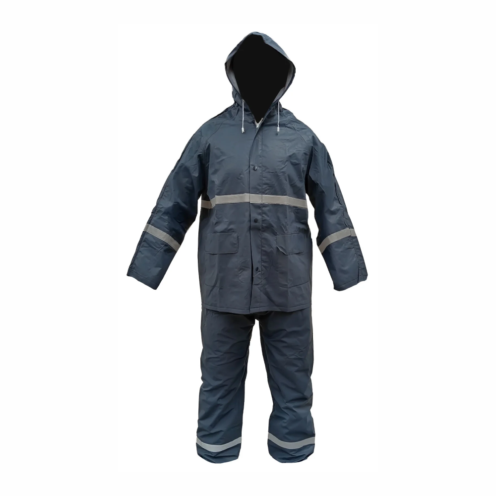 IMPERMEABLE COMPLETO COMPOSICIÓN 80% PVC Y 20% POLIESTER, CON BOTONES DE PLASTICO, BOLSAS Y REFLEJANTES